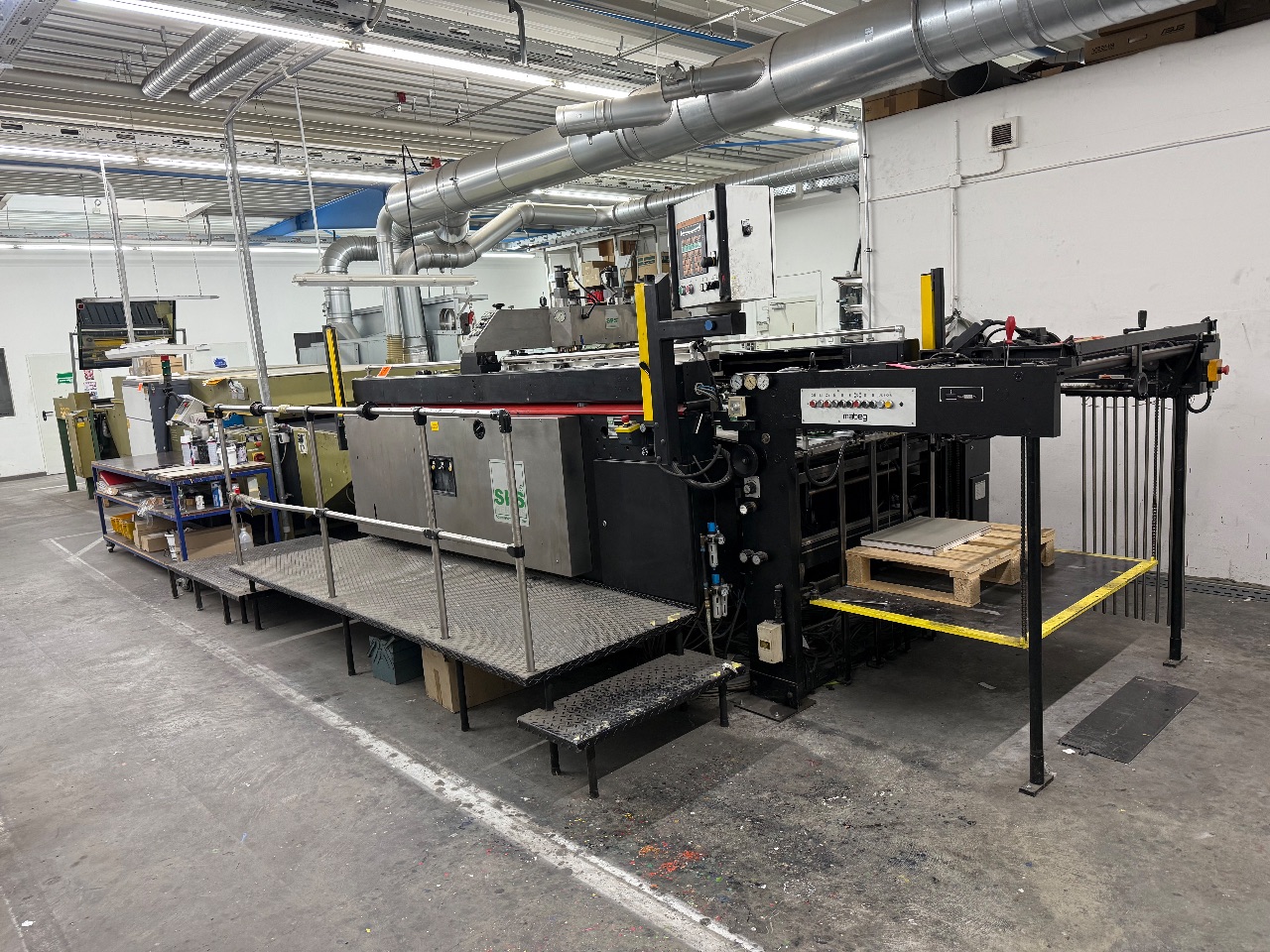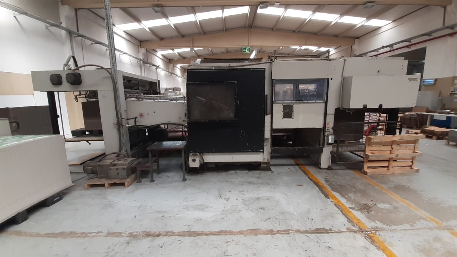 Year: 2024 Size: 1510 x 1100 mm Price: on request Die cutting style: Flat to flat Max. paper size: 1510 × 1100 mm Min. paper size: 550 × 550 mm Max. Die-cutting size: 1500 × 1100 mm Max. Die-cutting pressure: 350 T Paper processed cardboard: 1-9 mm Max. Die-cutting speed: 4500 sheets/h Max. feeding pile height: 1400 mm Max. delivery pile height: 1200 mm Main motor power: 11 kW Total power: 17 kW Weight: 17.8 T Dimensions: 6300 x 4500 x 2500 mm YouTube-Link: https://youtu.be/PaNQQakC |