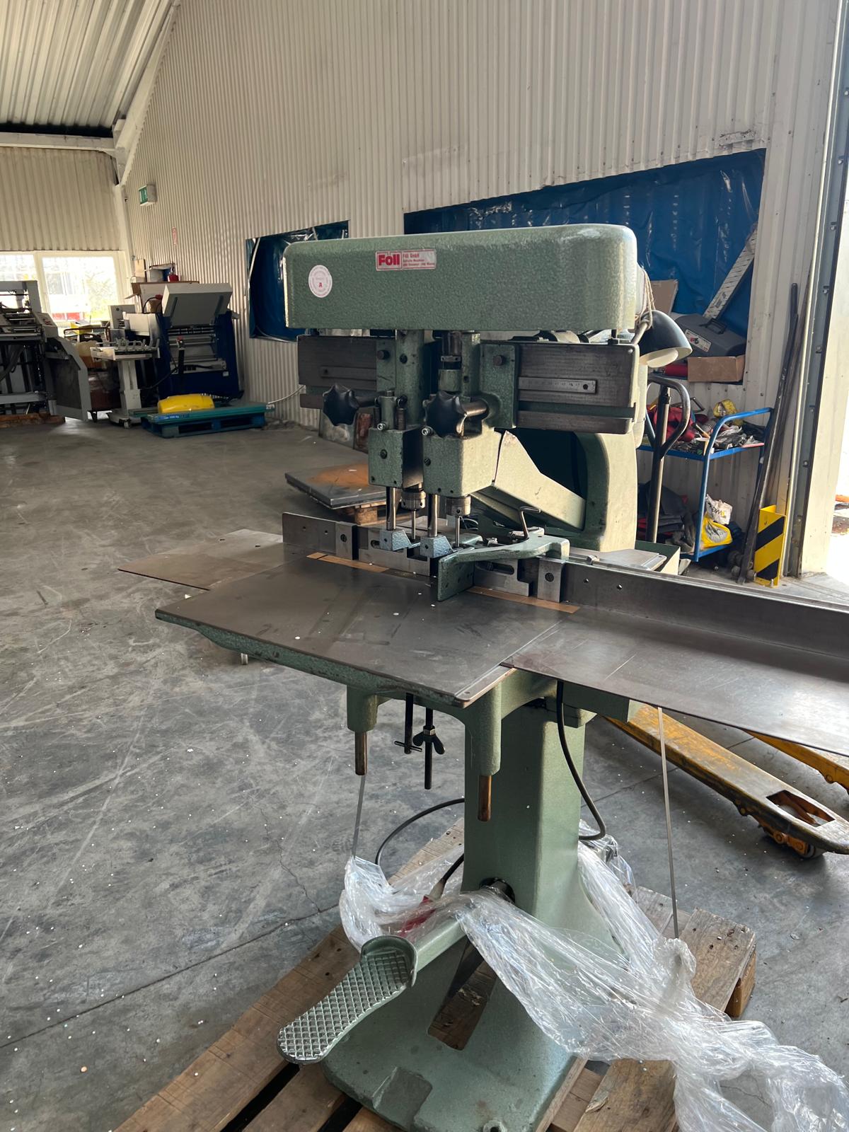 Size: 50 mm Price: on request - Model: Sure Paper Drill 25 - Type: Paper drilling machine with 2 spindles - Drill spacing: Adjustable between the spindles - Max. drill diameter: 10 mm - Max. pile height: 50 mm - Max. drilling depth: 60 mm (adjustable) - Drilling depth: Fine adjustment via stop - Paper guides: Adjustable front and side gauges - Table: Stable and height-adjustable - Drilling stroke: Manual via hand lever - Drilling speed: Constant - Power supply: 230 V / 50 Hz - Dimensions (approx.): 60 × 50 × 80 cm (L×W×H) - Weight: approx. 50 kg - Condition: Used, fully functional |