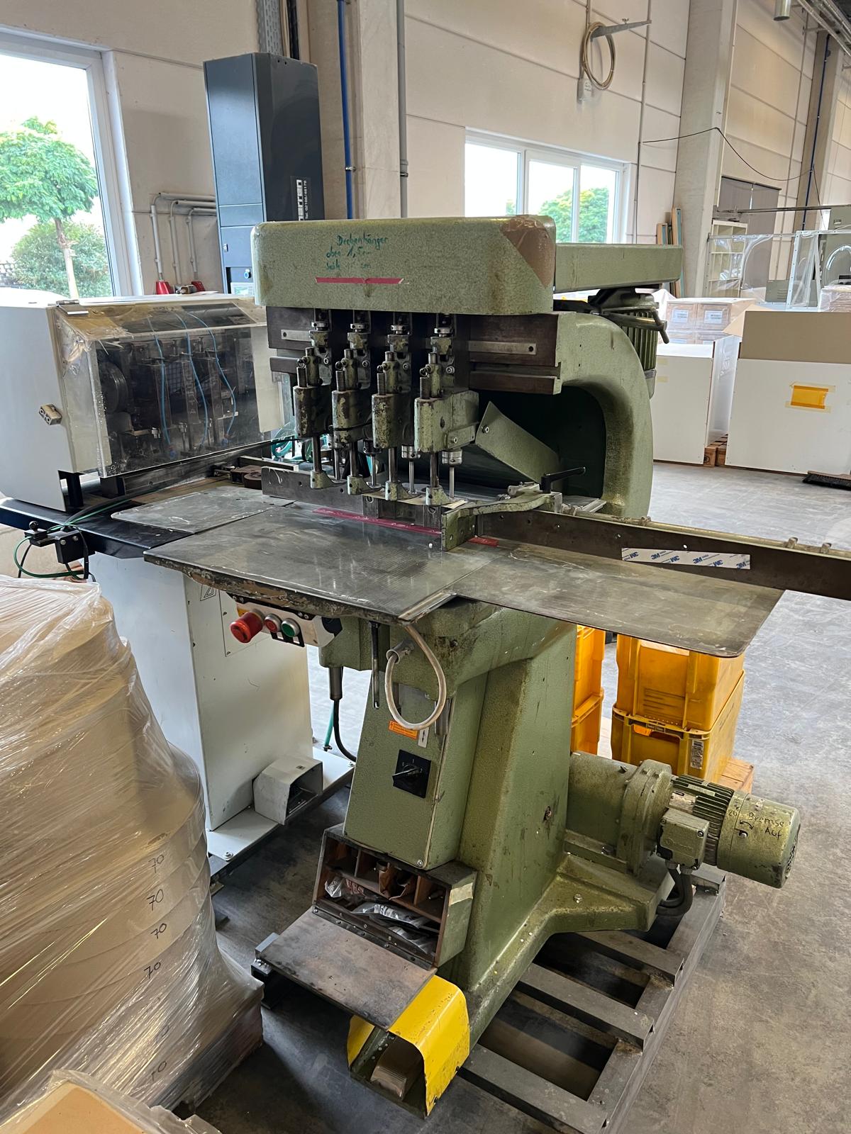 Price: on request • Manufacturer: Hang (Constantin Hang GmbH) • Model: DT 106 (106 DT) • Machine Type: Paper drilling & punching machine • Drilling Heads: 2 spindles, fully adjustable • Drilling Diameter Range: 3 – 20 mm (up to 14 mm standard, optional hull usage up to 20 mm) • Table Surface: approx. 110 × 68 cm (lateral × longitudinal) • Maximum Distance from Edge: 470 mm (forehead drilling up to 300 mm) • Maximum Stack Height: approx. 70 mm • Operation: Foot pedal control (electrical) • Power Supply: Three-phase, 380–400 V • Machine Weight: approx. 250 kg • Condition: Good/used (verified, cleane |