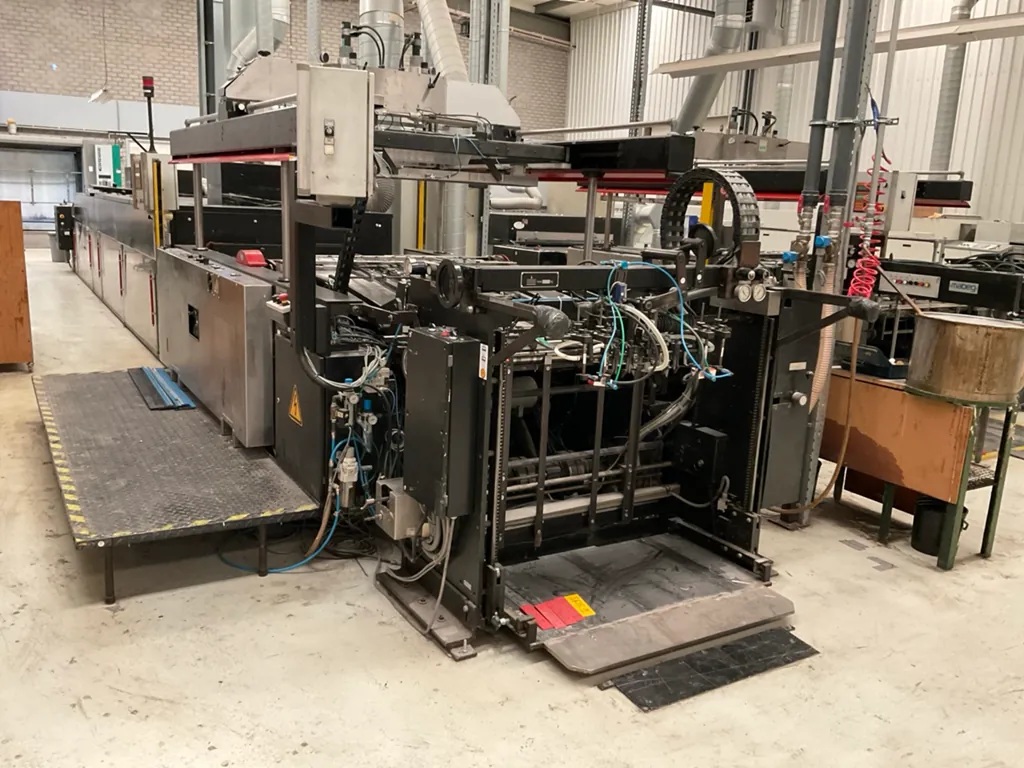 Year: 2024 Size: 1300 x 1100 mm Price: on request max. sheet size 1300 x 1100 mm min. sheet size 350 x 350 mm laminate precision +- 1,5 mm speed 6.000 sheet / hour total power 12 kW length 12,5 m weight 6,8 t Video in production: https://www.youtube.com/watch?v=2Y4uEs7qX0E |